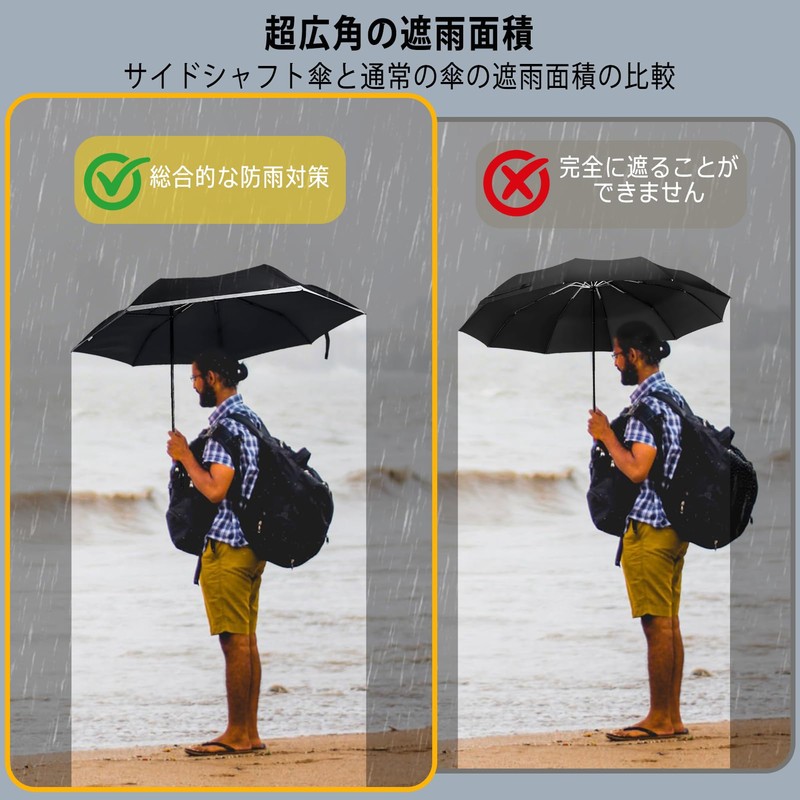 - (Increased Effective Rain Coverage): This folding umbrella uses an innovative eccentric pole (offset central pole), and retains the overall size and weight of the umbrella, this folding umbrella has been improved by approximately 40% compared to conventional umbrellas of the same standard. This breakthrough design greatly enhances the practical performance of the umbrella