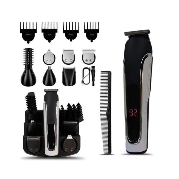 Men's Grooming Kit, 16-in-1 USB Rechargeable Hair Trimmer Set, 90 Min Runtime, Digital Display