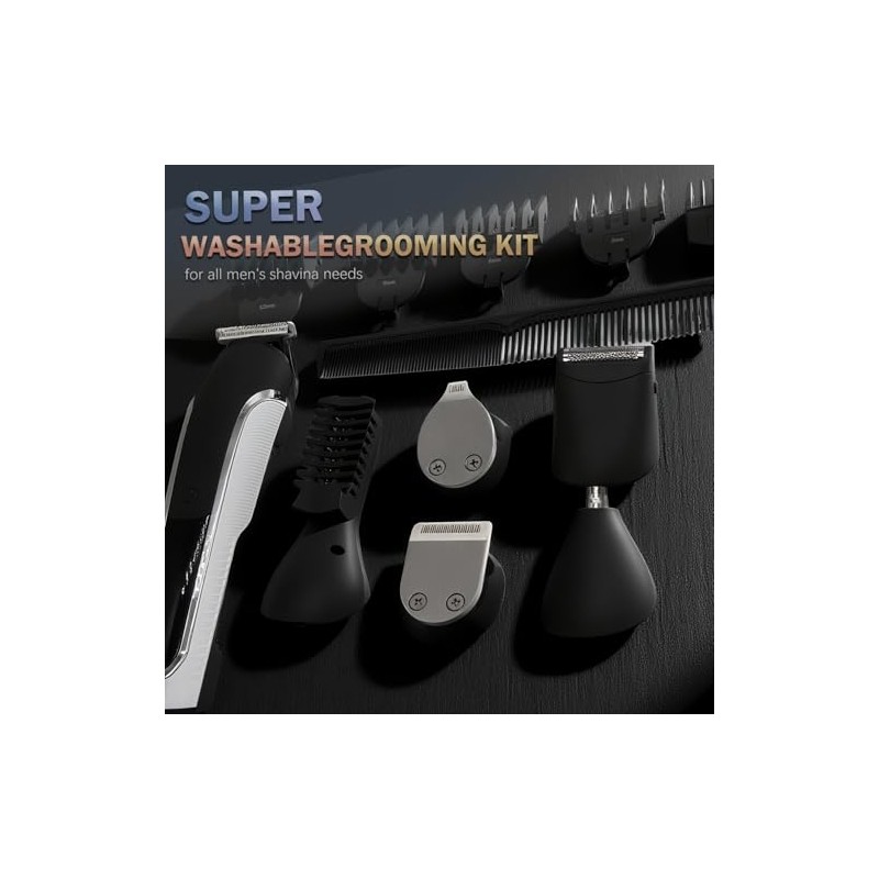 The trimmer features a powerful motor and sharp blades for clean, consistent cutting performance. The kit comes with specialized attachments for detailed facial hair trimming, hair clipping, and body grooming.