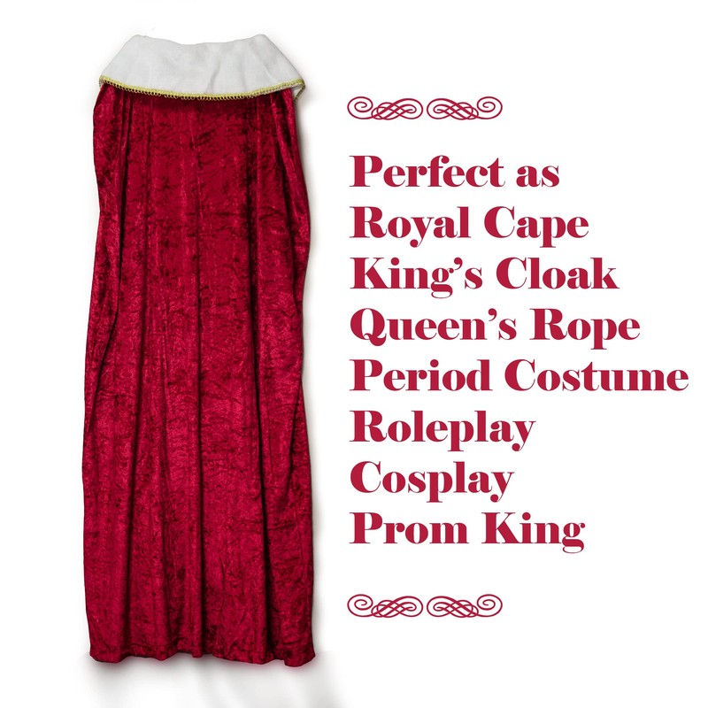 - Beautifully designed King’s Cloak, perfect for Halloween, Mardi Gras, Renaissance Fairs, and Theater