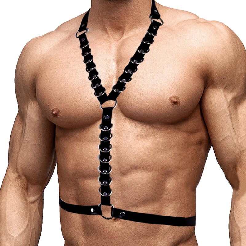 - UNIQUE NECKLACE DESIGN This men's leather body chain features an innovative neckband connected to a waist chain and perfectly shows off your muscular chest.