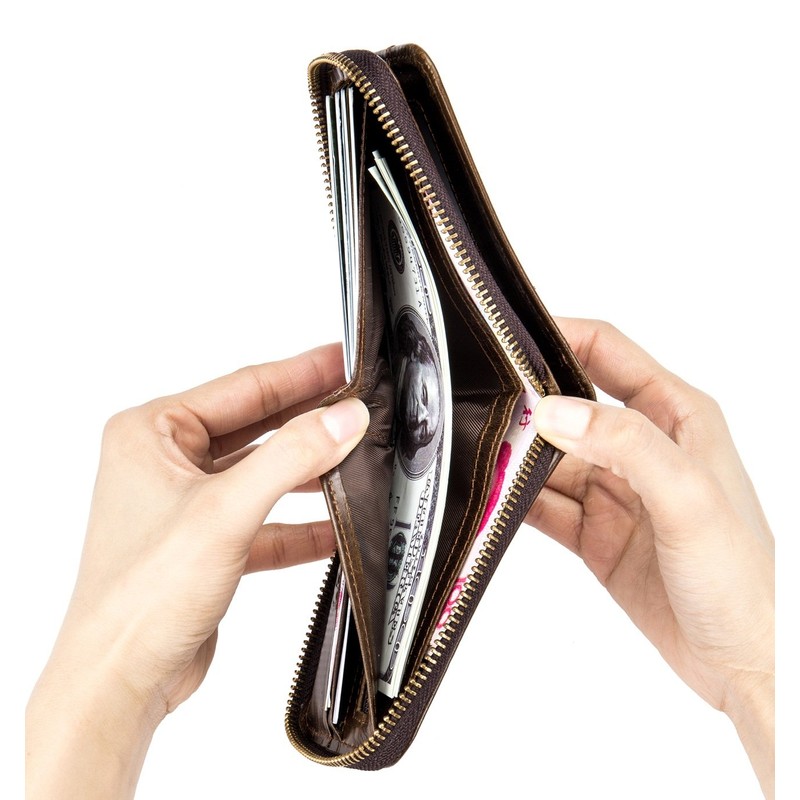 Men’s Leather Wallet Zipper Around RFID Blocking Wallets Bifold Multi Card Holder Purse, Deep brown, 4.72 x 3.74 x 0..99 inches, Vintage