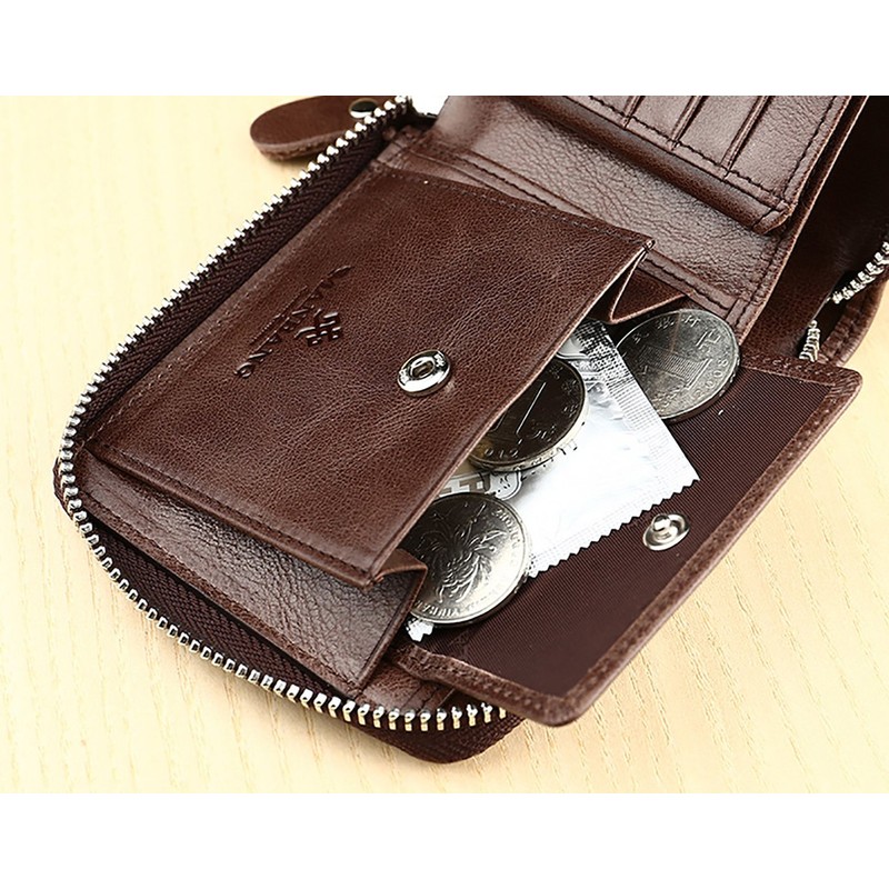 Men's Leather Zip Around Wallet ID Card Window Secure Zipper Bifold RFID