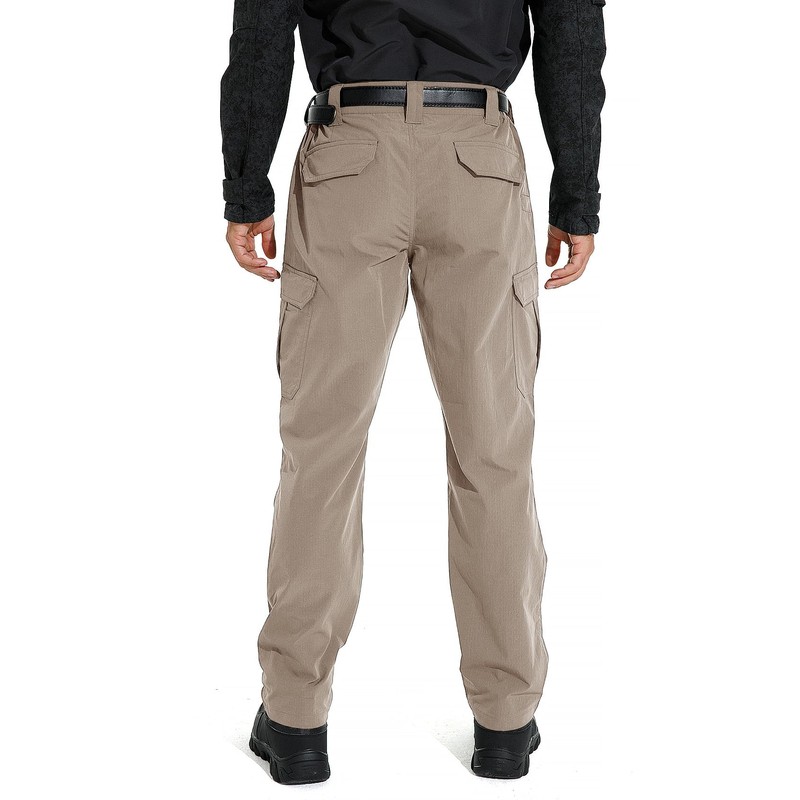 Men's Lightweight Ripstop Stretch Tactical Pants, Water Resistant Work Cargo Pants for Outdoor Relaxed Fit Khaki