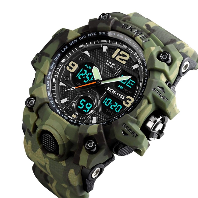 Men's Military Watch Sports Outdoor Waterproof Digital Watches with Date Multi Function Tactics LED Alarm Stopwatch Analog Watches 1155 Green Camo