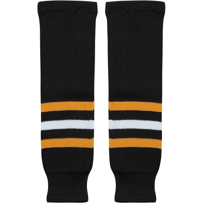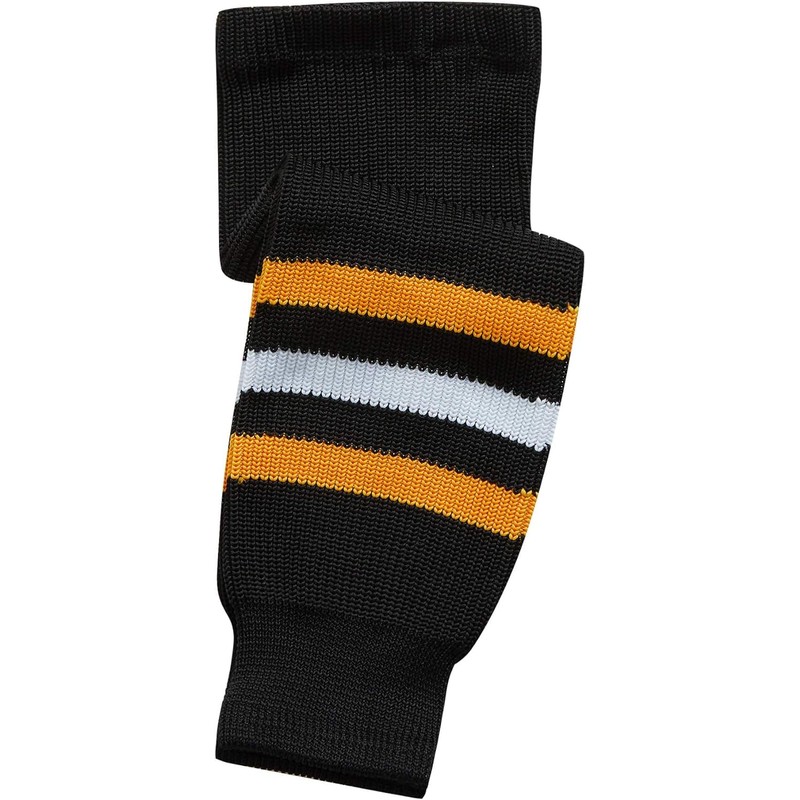 Men's Multiple Colors Knit Senior Hockey Socks (Black Socks with Yellow/White Stripe, X-Large (32"))