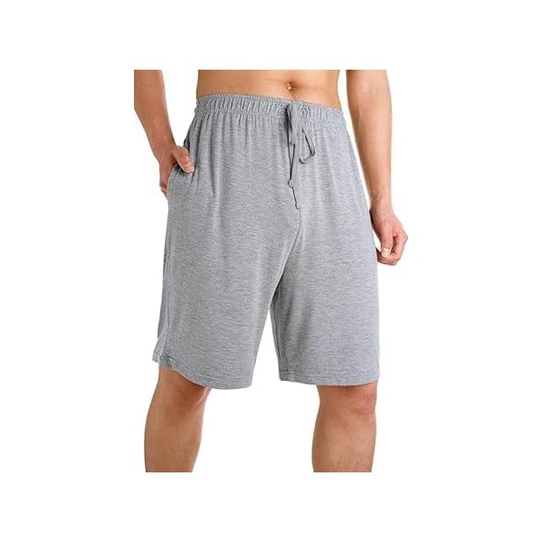 Men's Pajama Shorts with Pockets Lightweight Knit Sleep Bottom Loungewear Plus Size Lounge Bottoms (Grey, L)