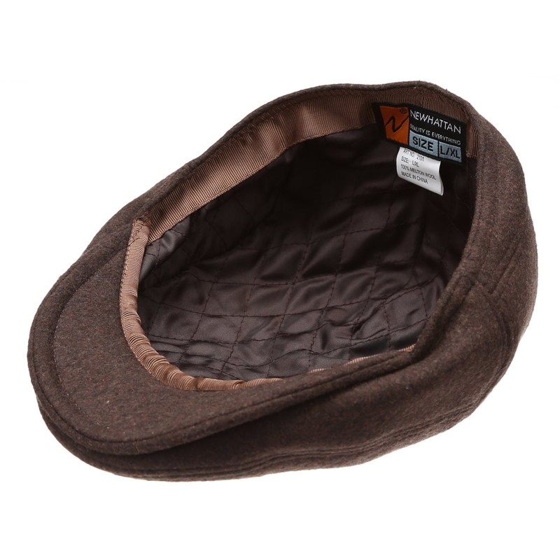 Men's Premium 100% Melton Wool 5 Panels Ivy Hat with Sock.(Darkbrown,LXL)