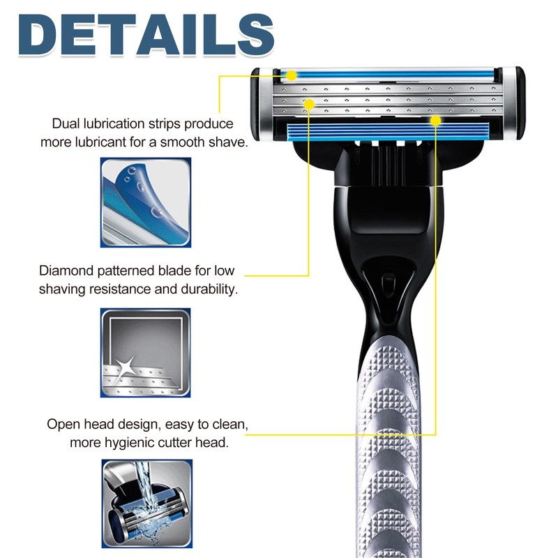 - 3-layer blades: men's razor blade features an open blade structure for easy rinsing and replacement. The 3-layer razor blades are versatile and comfortable to meet your needs.