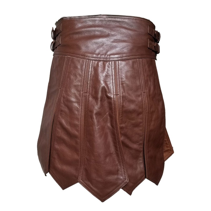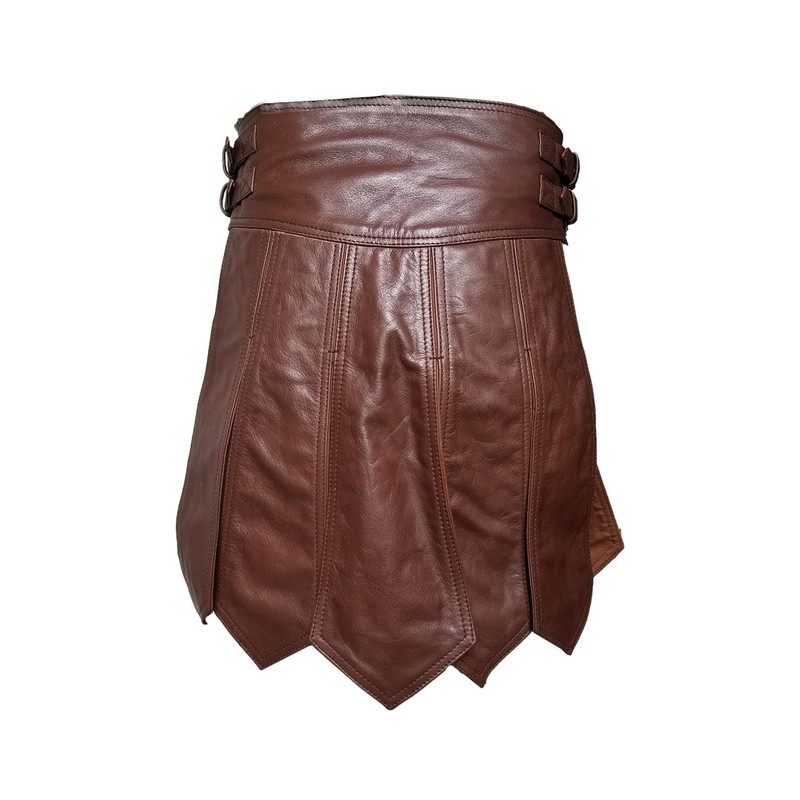 MEN'S REAL BROWN LEATHER GLADIATOR KILT – ROMAN STYLE, FULLY LINED, ADJUSTABLE, LARP, UTILITY KILT (K1).