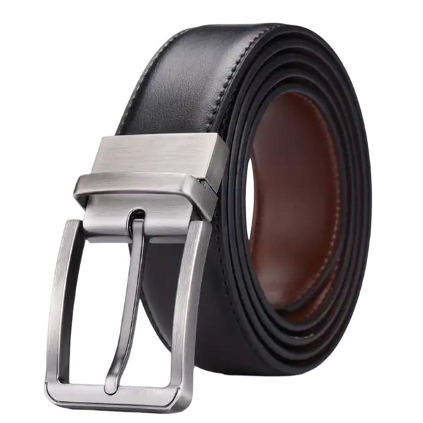 Men's Reversible Leather Belt with Silver-Tone Buckle