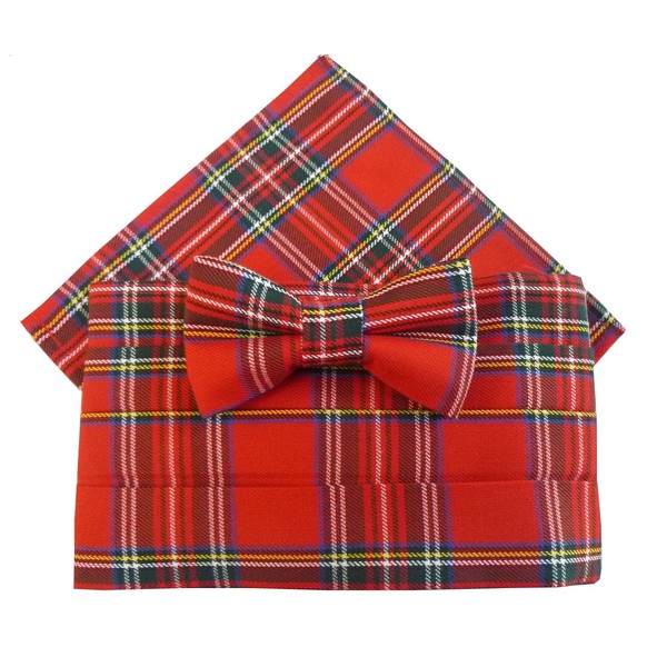 Men's Scottish Royal Stewart Tartan Cummerbund Set (includes Bow Tie & Pocket Square)