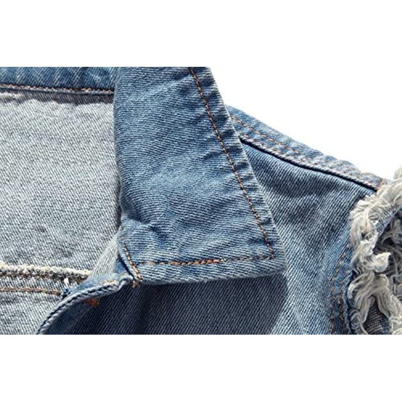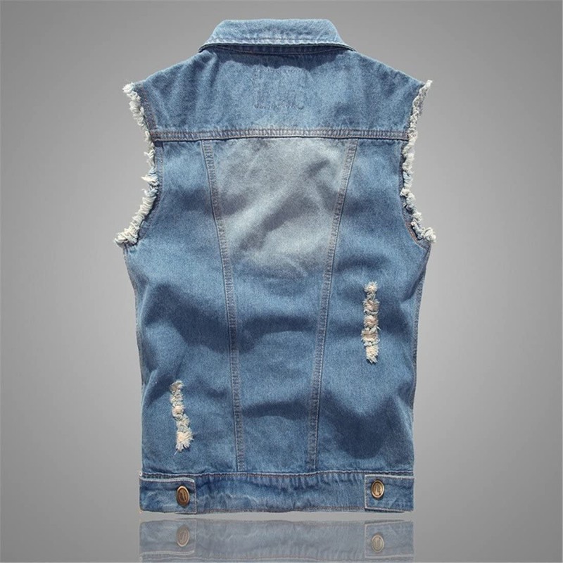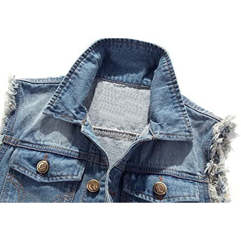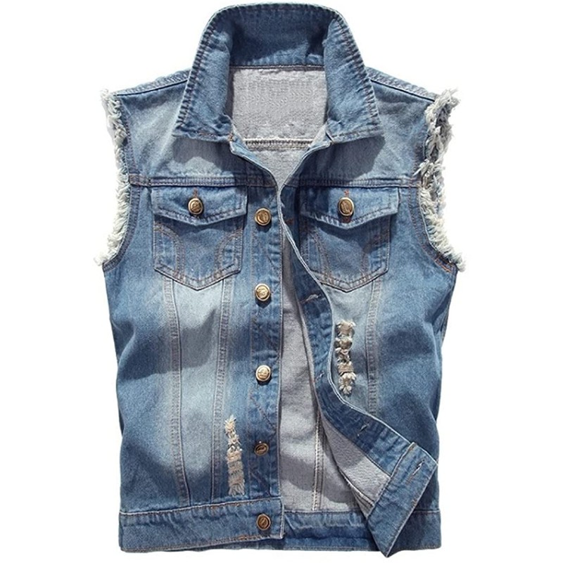 Men's Sleeveless Denim Vest Casual Ripped Classic Button Down Jean Jacket
