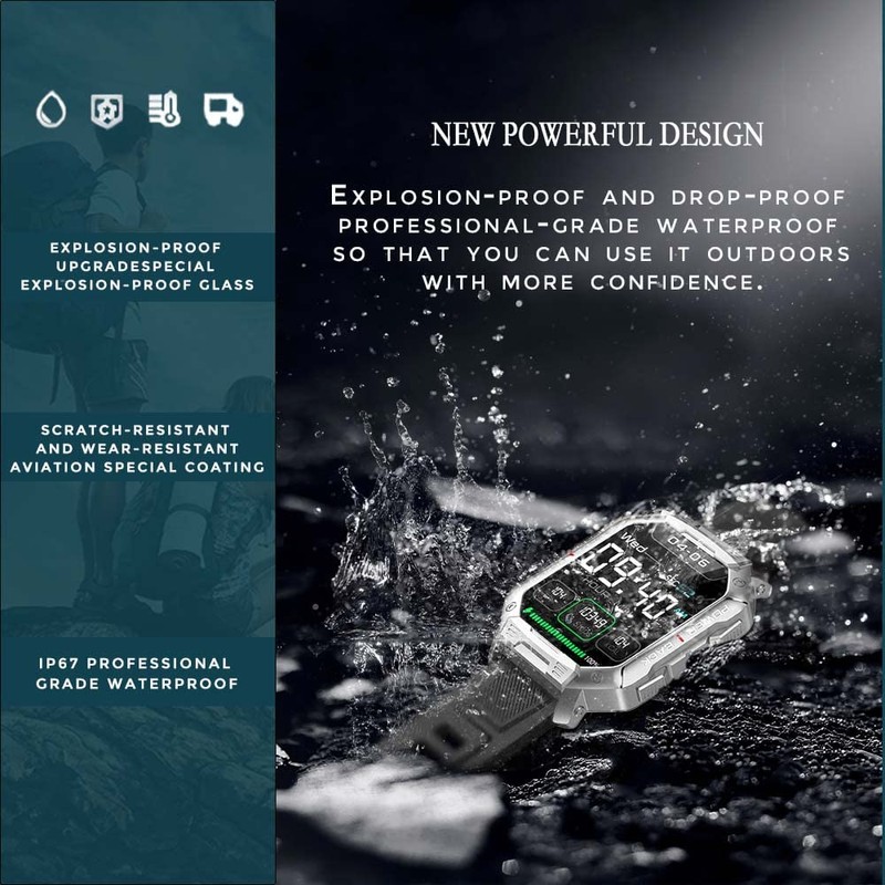 - Military standard check: thanks to special composite materials and metal housing, our smart watches for men pass dozens of standard tests, including temperature, low pressure height, dust resistance, salt mist, liquid contamination, etc. The fitness watch can undoubtedly become your reliable companion when you are doing outdoor activities.