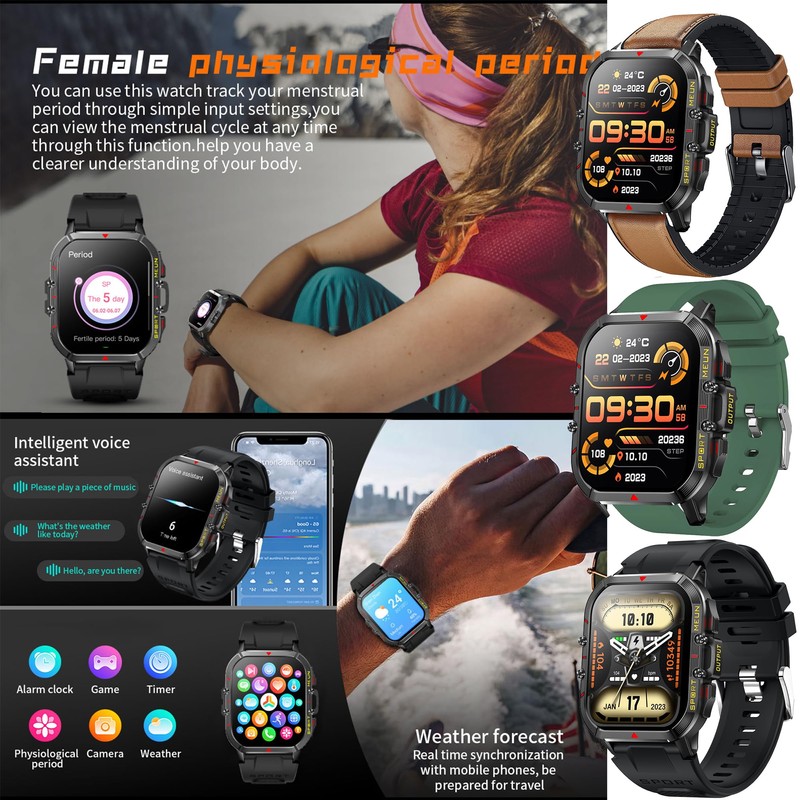 - Military standard check: This smart watch for men can monitor your heart rate in real time and display daily, weekly and monthly breakdown data via our app. Sleep Monitor helps you lead a healthier lifestyle by tracking your sleep time and phases through a comprehensive analysis of sleep quality data. Step tracking, dynamic 24-hour heart rate monitoring, blood pressure and sleep monitoring, breathing training, etc. Smartwatch helps you learn more about health, etc.