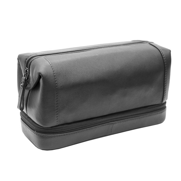 Men's Soft Black Leather Zipped Bottom Wash Bag Toiletry Bag