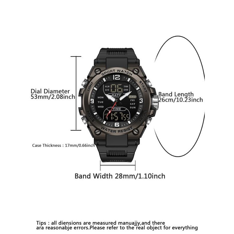 Men's Sporty Analog-Digital Watch, Resin Case, Mineral Glass Dial, Quartz Movement, Waterproof, Luminous Hands & Numbers:_Silver_one-size