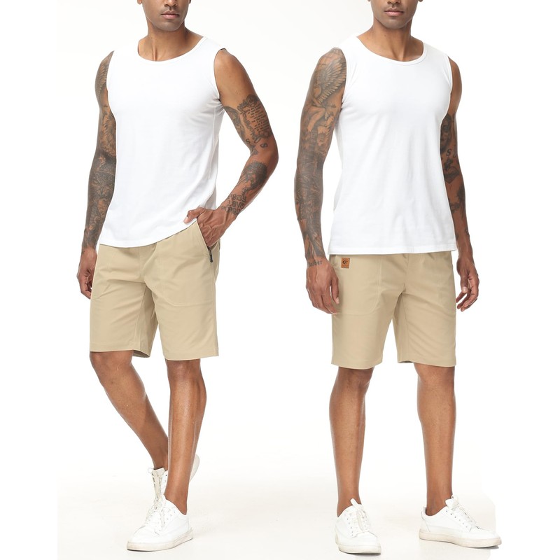 Men's Stretch Shorts Casual Classic Fit Drawstring Summer Beach Shorts with Zipper Pockets Khaki 40