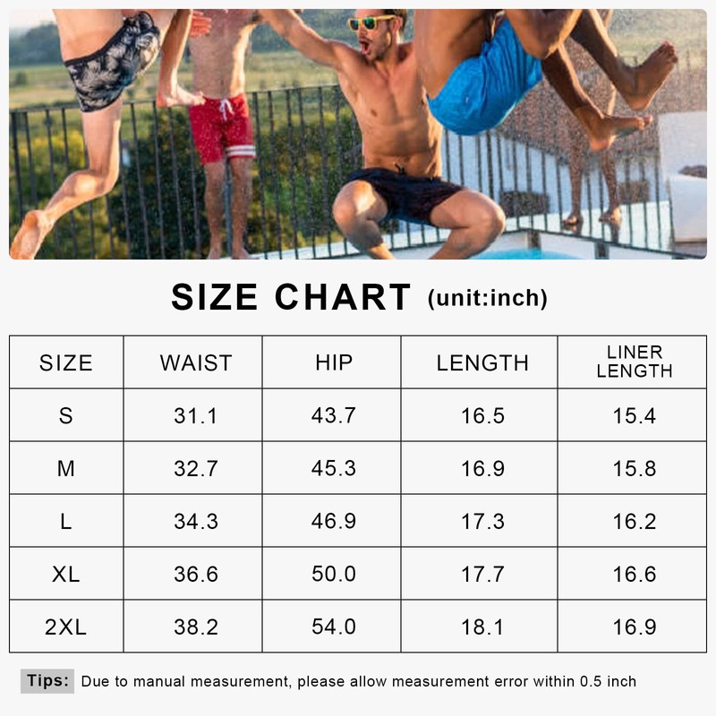 - 2 In 1 Swimming Trunks: Built in four-way stretch compression liner with a pocket, soft and comfort.