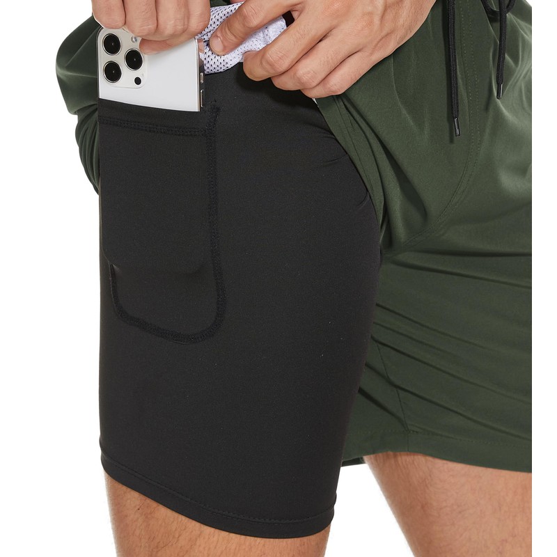 2-in-1 swimming trunks men's swimming shorts with zip pockets.