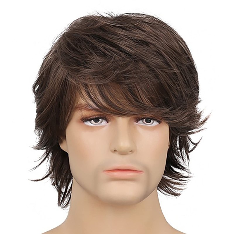 Men's Synthetic Wig, Men's Short Wig with Long Adjustable Bangs Brown Soft Simulation Synthetic Straight Hair for Men for Cosplay, Brown Men's Wig