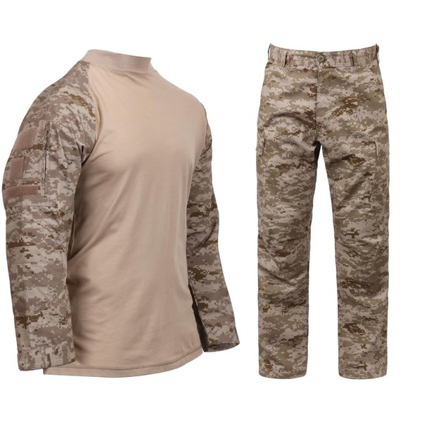 Men's Tactical Airsoft Combat Uniform Set Combat Shirt & BDU Pants (Desert Digital Camo, S)