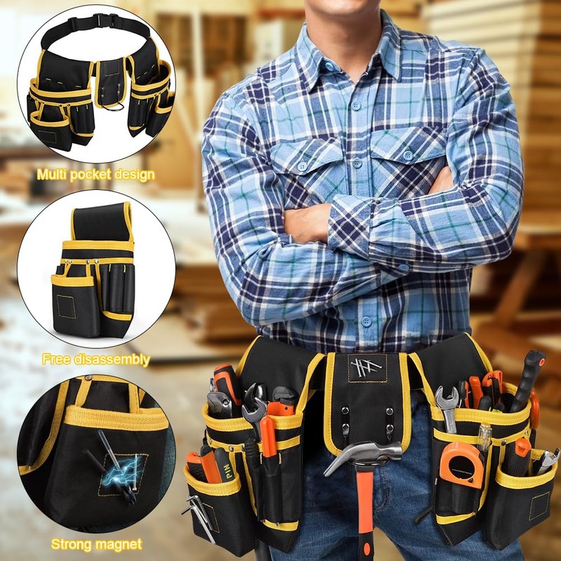 - Customizable & Detachable 3 separate pockets can be removed freely according to the number of tools you have. If you have fewer tools, you can remove one of the bags. If there are even fewer tools, it won't be a problem. With our tool belt, you always have easy access to pliers, hammers, tape measure and fasteners!