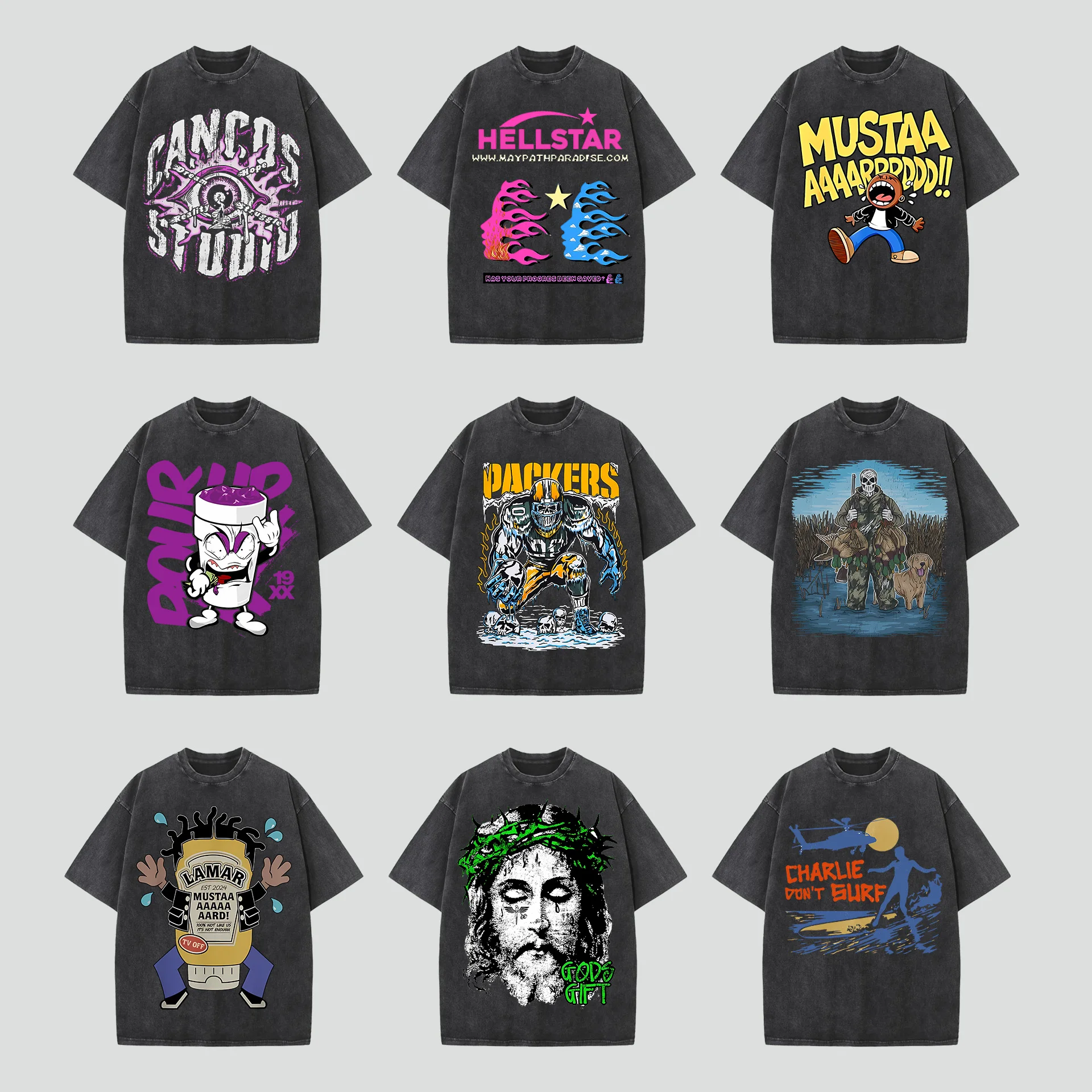 Men's US Stock Cotton Washed T Shirt Festival Choice American Casual Skin Friendly BreathableColor: Black, Size: 2 XL