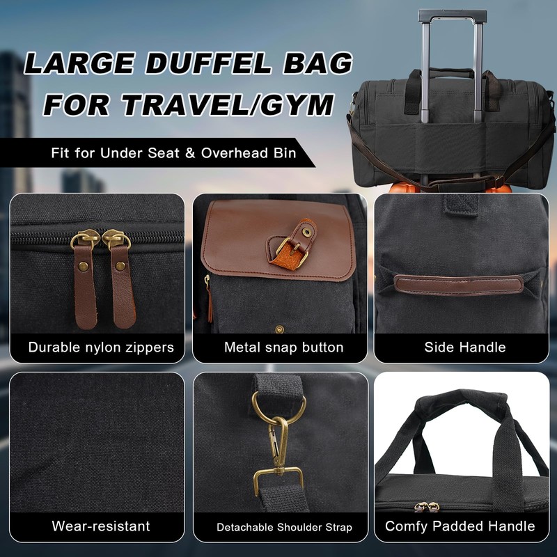 • Premium Materials:Crafted from water-resistant & tear-resistant canvas fabric, this overnight bag is built to withstand the rigors of daily use. Enhanced zippers provide durability for a seamlessly smooth user experience