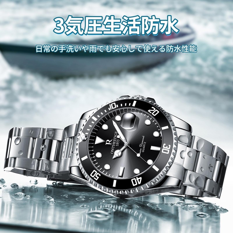 - (Submariner Style Authentic Diver's Style) This men's watch features a luxurious rotating bezel and heavy design. The sophisticated appearance of the popular dive watch motif, making it suitable for a wide range of occasions from daily life to business occasions. A watch with a good balance of style and quality, this is a cheap model that achieves high cost performance