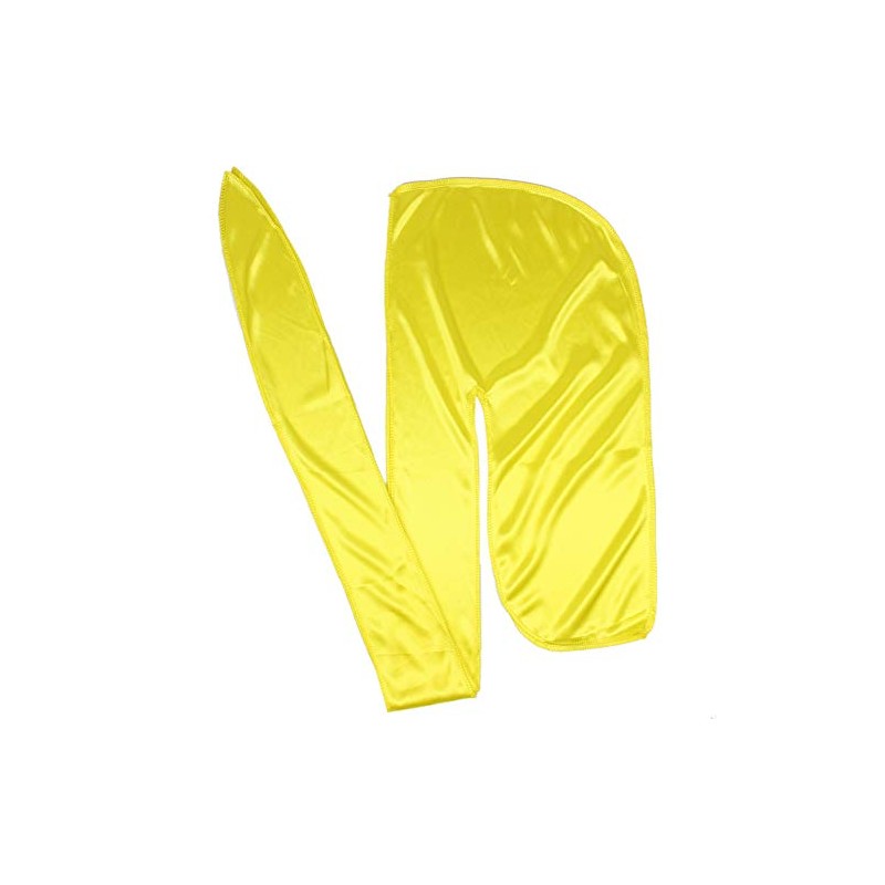 Men Silk Durag Long Straps Bandanas for Men Headwear Waves Cap (Yellow)