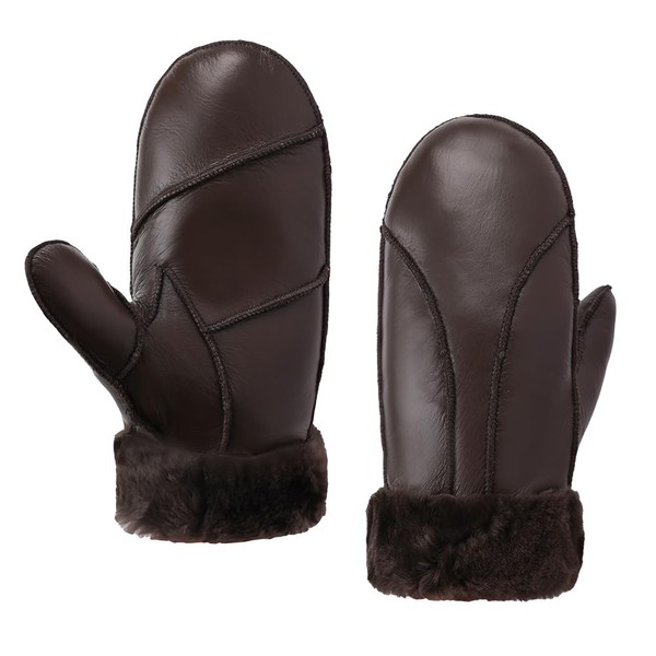 Men Winter Mittens Shearling Sheepskin Mittens Warm Fur Lined Mittens Gloves,Brown,S