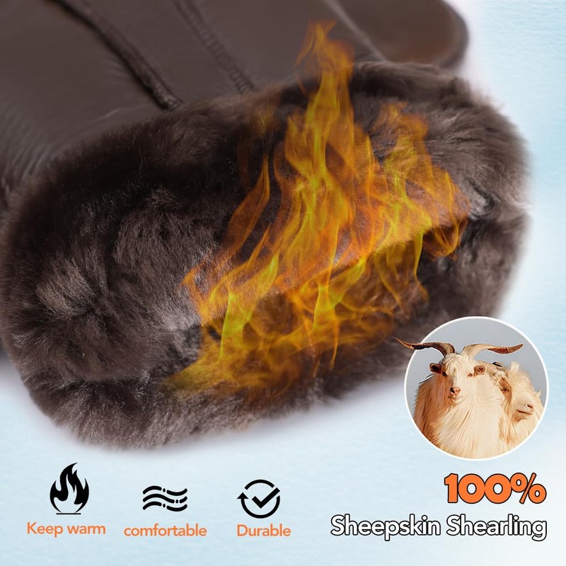 • These winter mittens possesses the virtues of 100% Shearling Sheepskin,excellent heat retention and air permeability,keeping your hands flexible, dry and warm all day long.