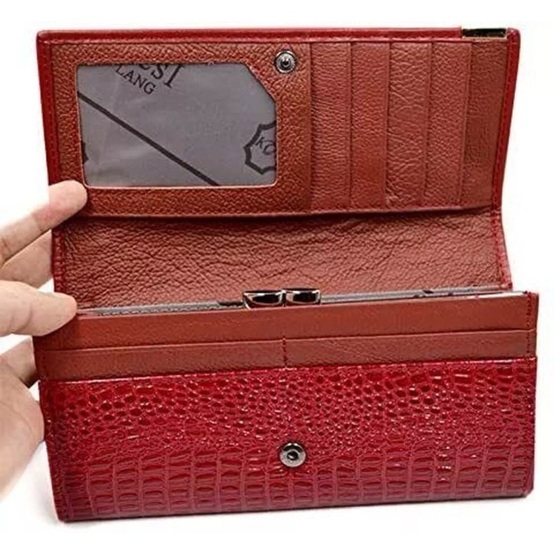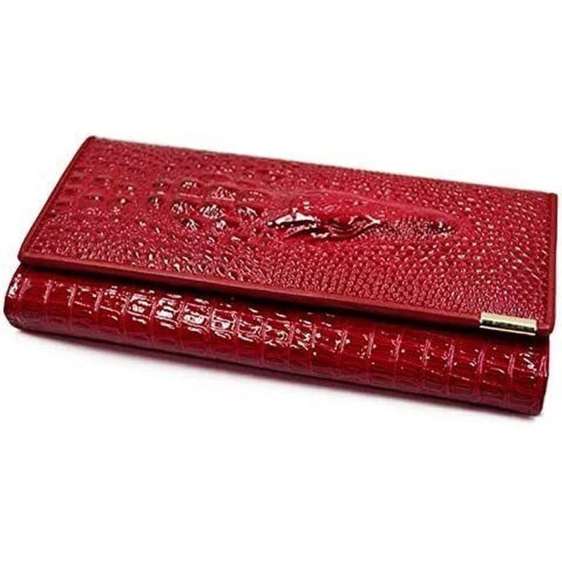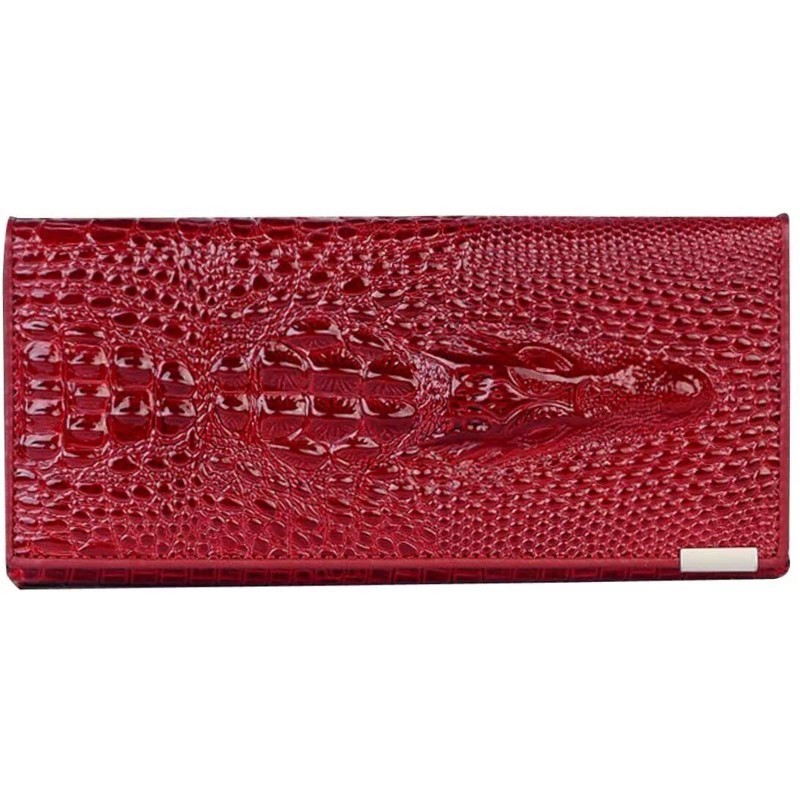 Men Women Embossed Crocodile Pattern Clutch Wallet Long Card Holder Purse(Red)