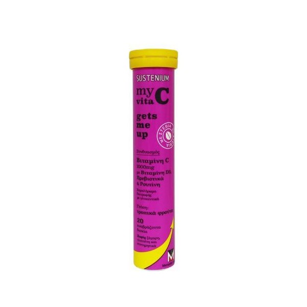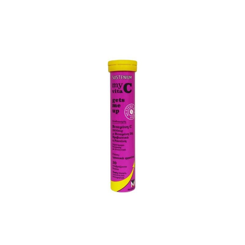 Menarini Sustenium My Vita C Gets Me Up Vitamin C 1000 mg is a dietary supplement with vitamins C & D in effervescent form, sweetener from the stevia plant and wonderful taste of tropical fruit. It is fortified with prebiotics and rutin, for optimal results.