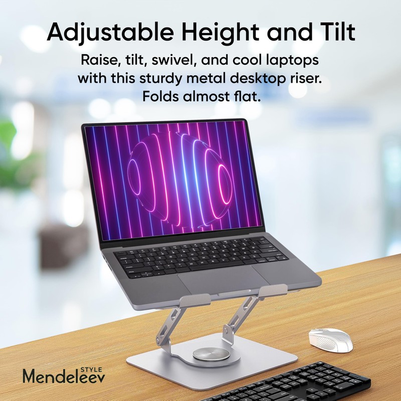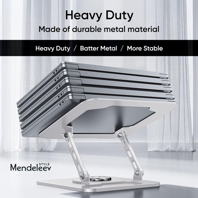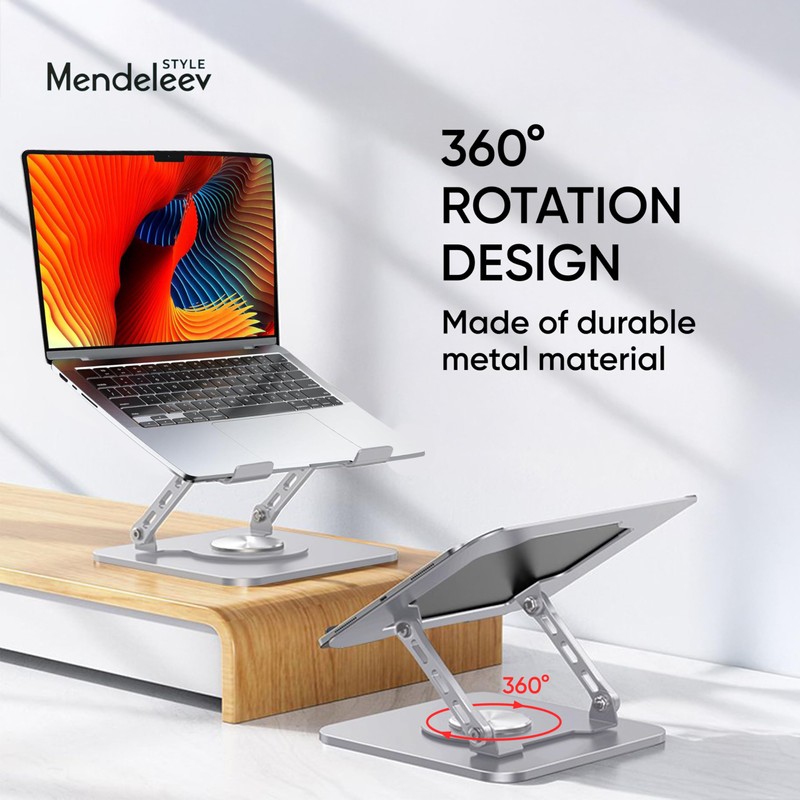 MENDELEEV STYLE Silver Laptop Stand for Desk with 360 Rotating Base Compatible with MacBook Pro/Air Notebook up to 16 Inches Computer Stand for Laptop Ergonimic Foldable Riser for Desk
