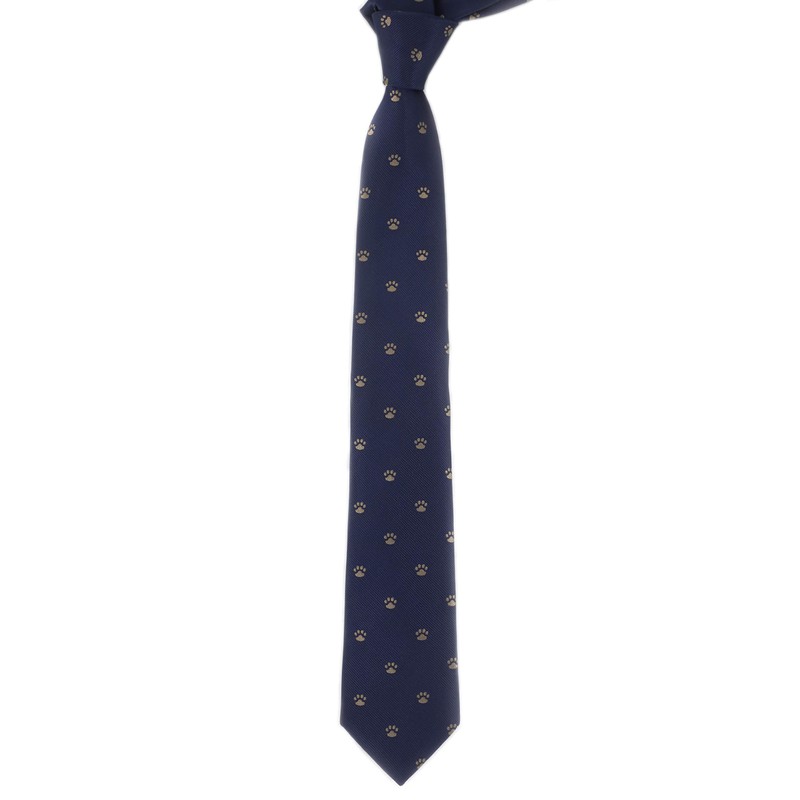 Corbata de microfibra jacquard con patrón de huellas de cachorro, hecha a mano con fondo de sarga fina azul marino, hilo de color café tela con diseño de huellas a través de toda la pieza de corbata. La mezcla de moda y novedad va bien con atuendos de oficina y ropa casual.