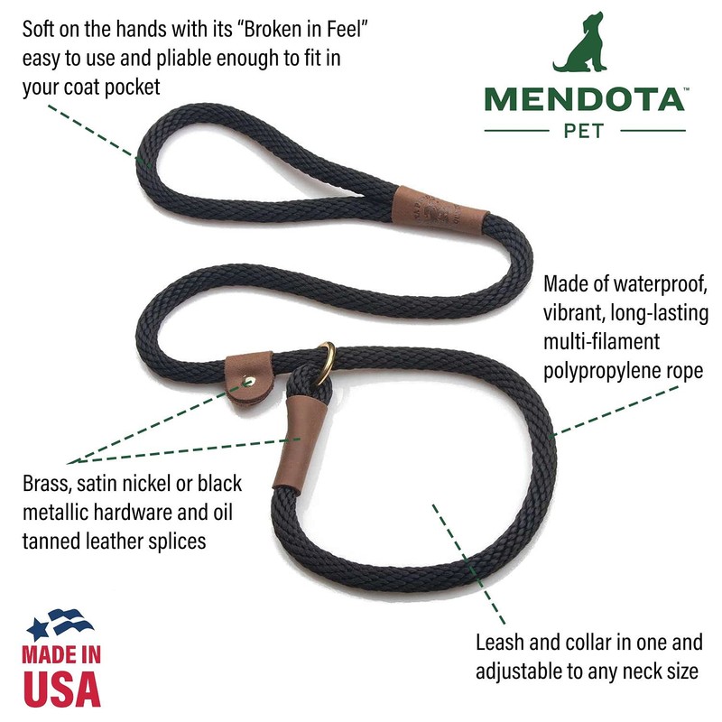 • HAND MADE in USA: Mendota Slip Leashes are hand made in the USA using premium quality material.