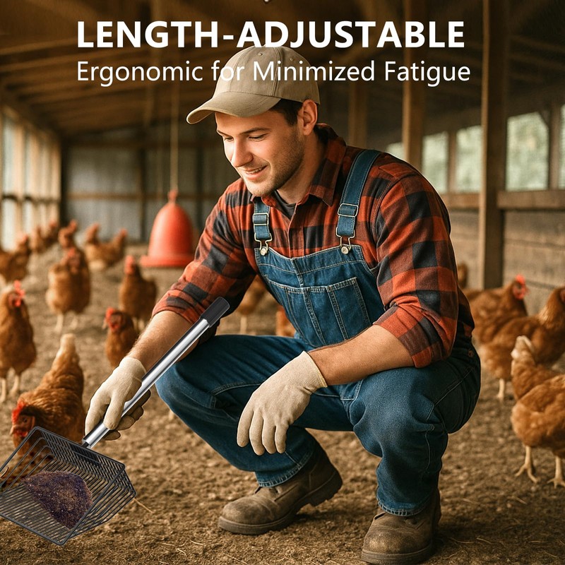 MENGBEI Chicken Poop Scooper, Lightweight Chicken Coop Sifter Shovel, Stainless Chicken Coop Scoop for Sand, 15 to 54" Long Shovel Chicken Coop, Multifunctional Litter Scoop for Easy Cleaning