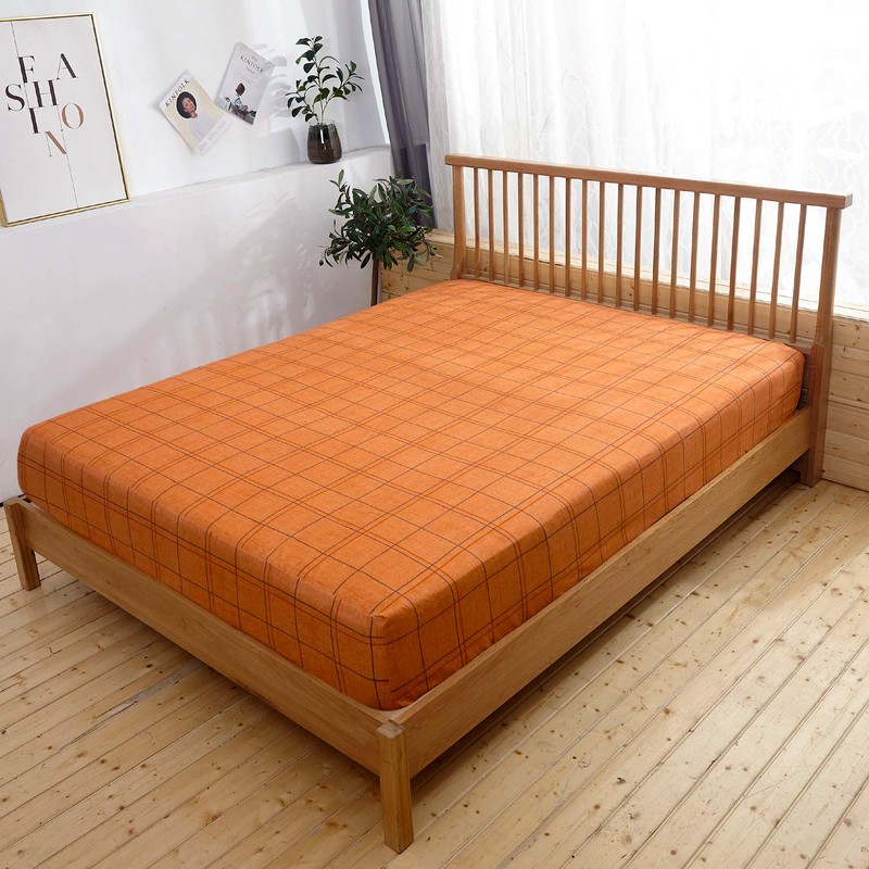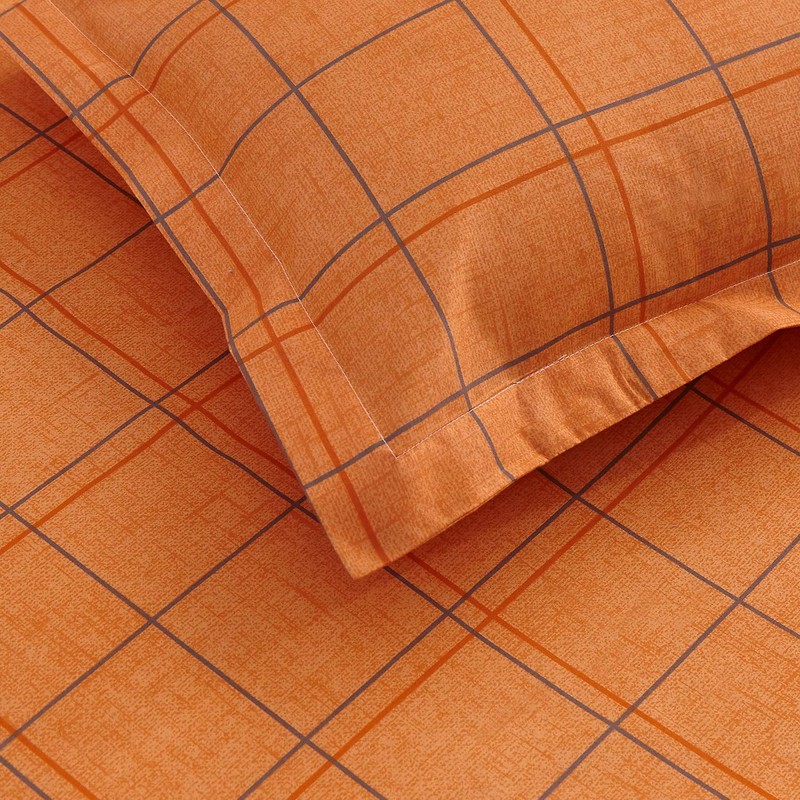 Mengersi Simple Grid Sheet Set - Geometric Plaid Pattern Bed Sheets - Deep Pockets - 1 Fitted Sheet, 1 Flat, 2 Pillow Cases - 4 Piece (Queen, Orange)
