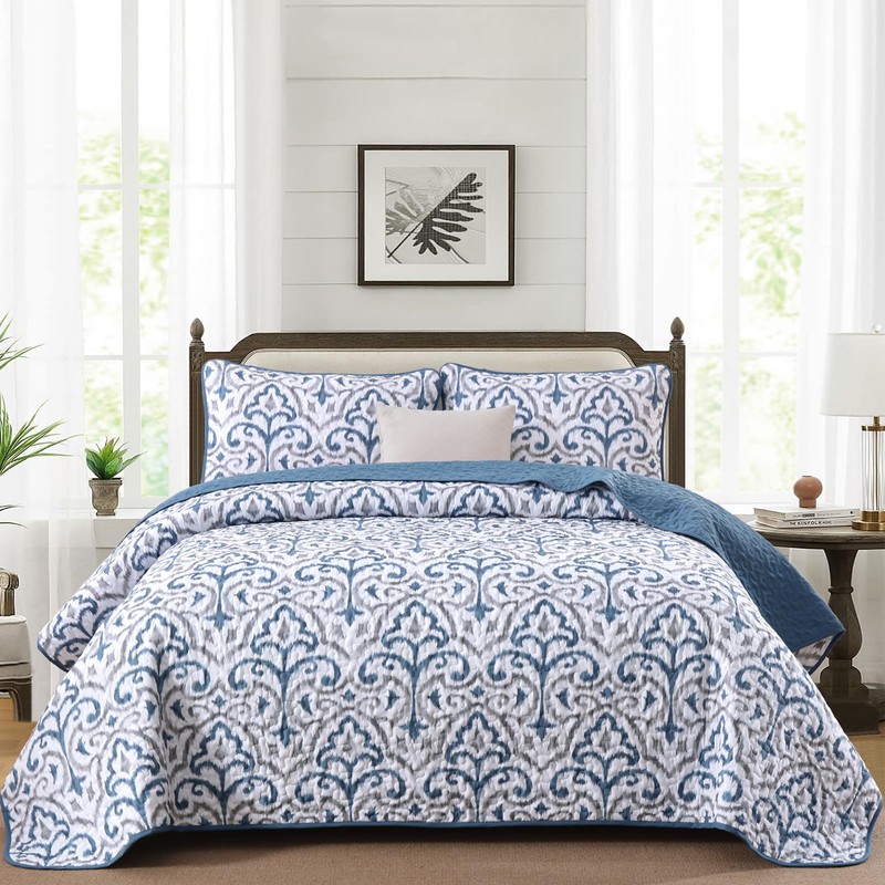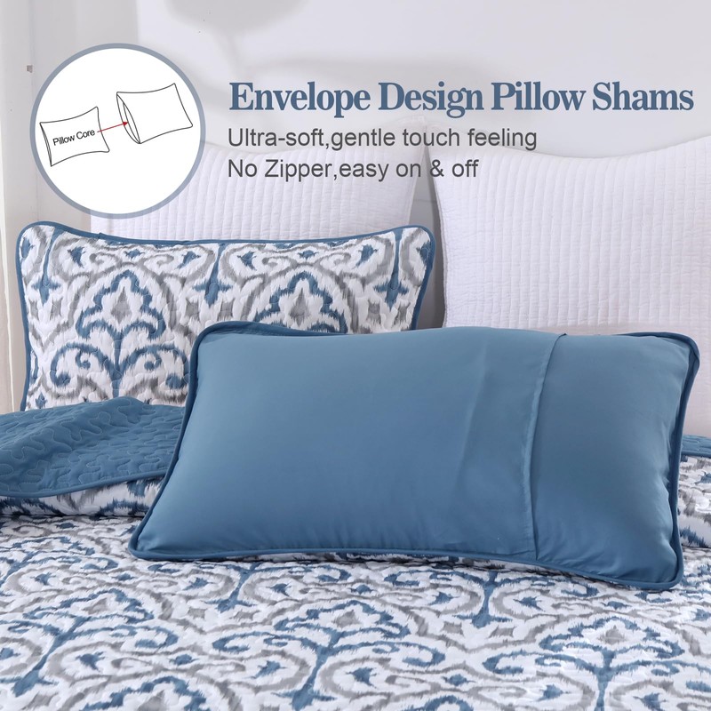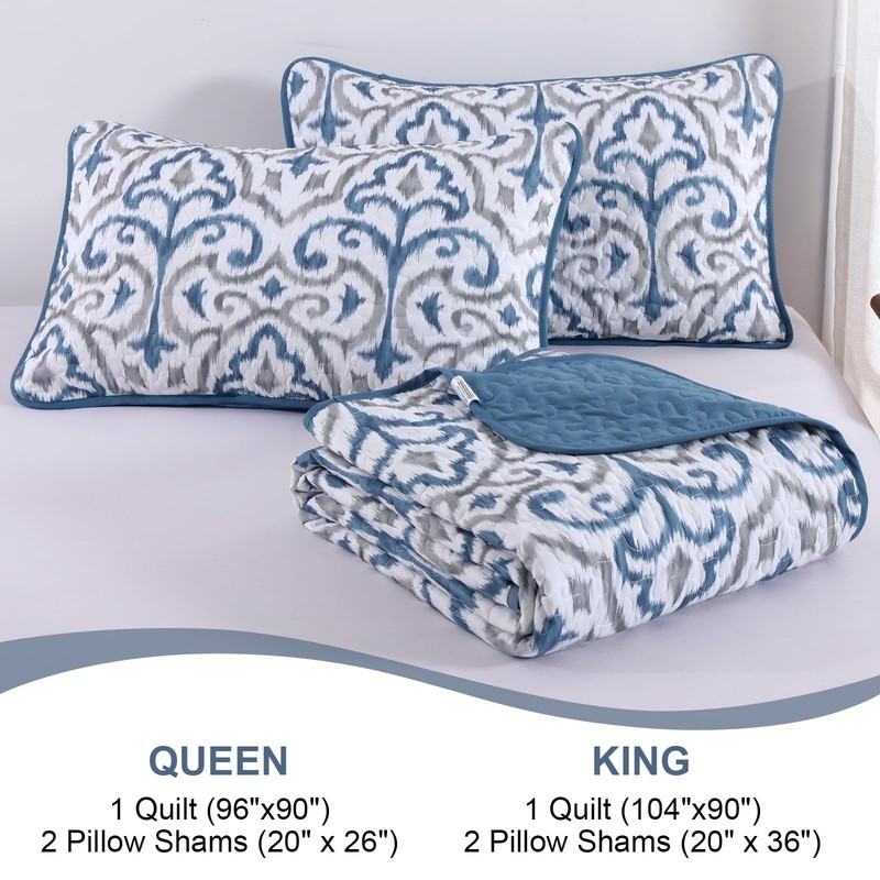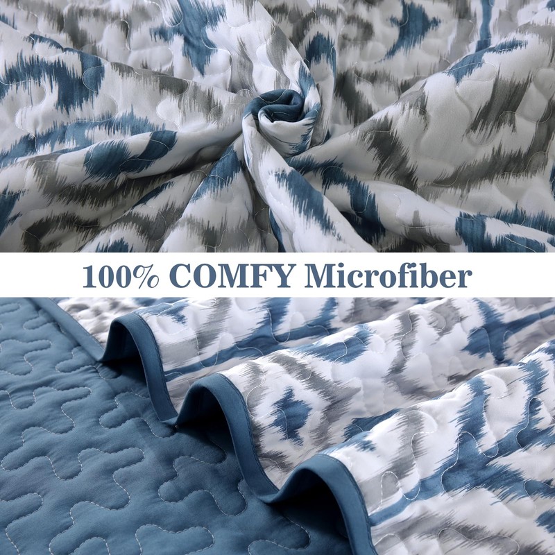 - PERFECT BED QUILT - Presenting a sophisticated and chic look, our boho quilt set features a blue and gray pattern design that complements any home decor.The classic pattern adds a touch of elegance, making it a must-have for your bedroom.
