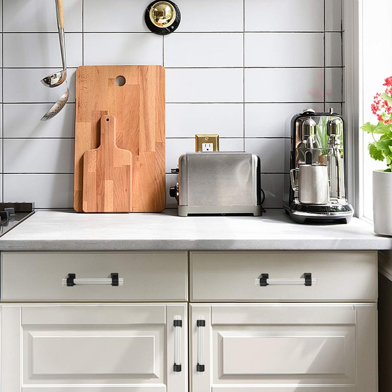 - Acrylic tube match black matte zinc alloy base cabinet pulls creat a stylish look, crystal-clear bar pull with simple lines make your home fashion and shine