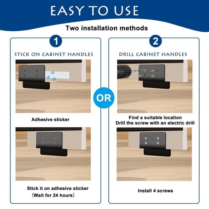 - 3.Easy Installation, Two Choices:Our Products Peel And Stick Trash Can Foot Pull Offer You Two Installation Methods:1 Foot Pull For Trash Cabinet Drawer Adhesive:You Can Choose No Drill Cabinet Handles, Use Adhesive To Stick Them To The Cabinet Doors, Which Will Not Damage The Overall Appearance Of The Cabinets. Drilled Holes For Installation: If You Find Self Adhesive Cabinet Pulls Unstable, You Can Opt For Drilled Foot Pulls. Mark The Drilling Position And Then Fix It With Screws.