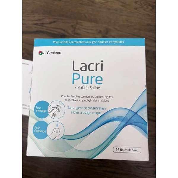 Details: Rinsing and Insertion Saline Indicated for use with soft, hybrid and rigid gas permeable lenses, LacriPure is a sterile, non-preserved saline which provides a safer alternative to tap water rinsing. Packaged in a 5ml unit-dose vial, LacriPure has been approved as a scleral lens insertion solution, providing an on-label solution for exceptional safety and convenience.