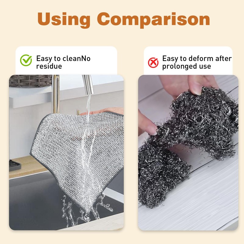 - Strong Cleaning - These multipurpose wire dishwashing rags feature very strong cleaning ability, and it is reusable, easy to remove grease, highly absorbent, non-scratch and fast drying, safe to use on all kitchen surfaces