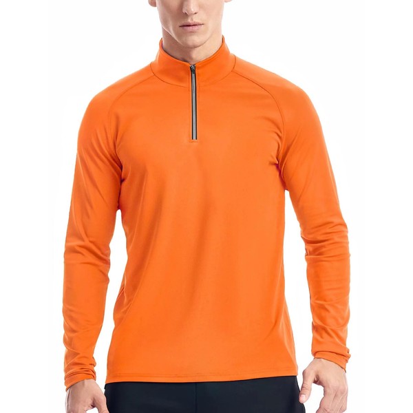Mens 1/4 Zip Pullover Running Moisture Wicking(Orange,Large)