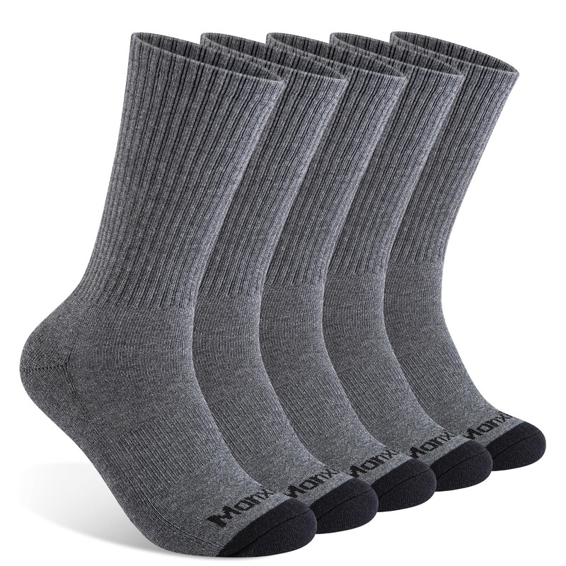 Monxiery Mens 100% Cotton Moisture Wicking Cushioned Crew Socks, Athletic Performance Work socks