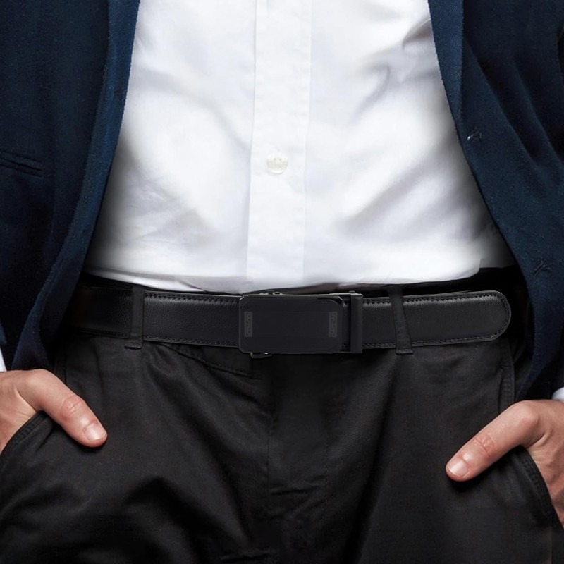 - Exact fit men belt: The back of belt,there are 32 ratchet notches, No trouble of size in-between of holes! which can follow the variation of your waist precisely.