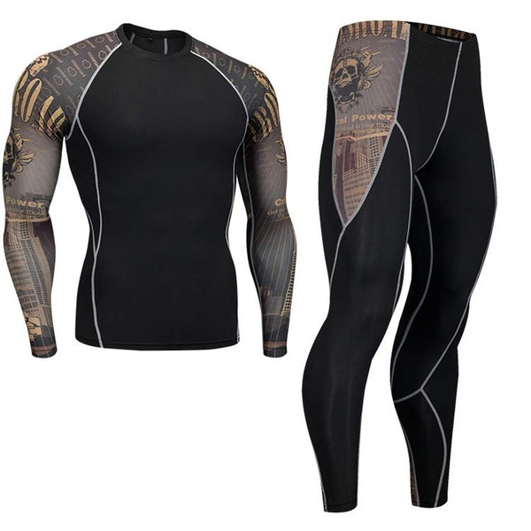 Mens Compression Tights and Shirts Long Sleeve Quick Dry Running Fitness Suits (Yellow, X-Large)