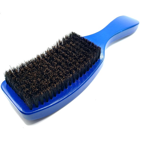 Mens Curved Soft Thick Boar Bristle Wave Hair Brush with Heavy Woodern Handle (Blue)